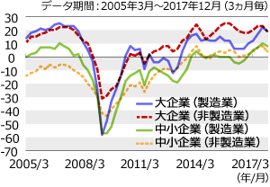 日本銀行が10月3日に発表した2017年9月(回答期間:2017年8月29日~2017年9月29日)の全国企業短期経済観測調査(短観)では、製造業を中心に業況感の改善がみられました。一方、引き続き人手不足の深刻度は増しており、生産性向上や省力化投資などが不可欠であるとみられています。以下、概要です。