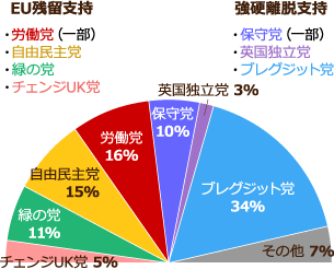 有権者の支持は強硬離脱とEU残留が拮抗か