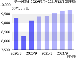 - ※世界の原油需要の推移(2020年12月以降はOECDの予想値)